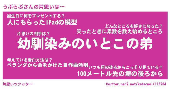 | 男性向けラノベタイトル風あだ名 | 『うぶらぶの憂鬱』 |