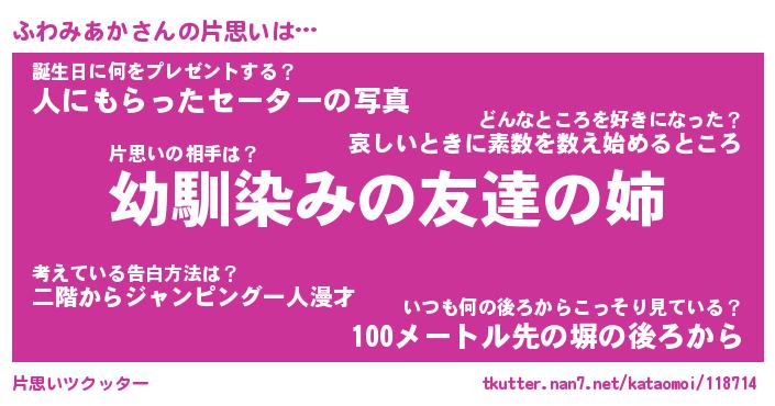 | 男性向けラノベタイトル風あだ名 | 『ふわみあかの憂鬱』 |