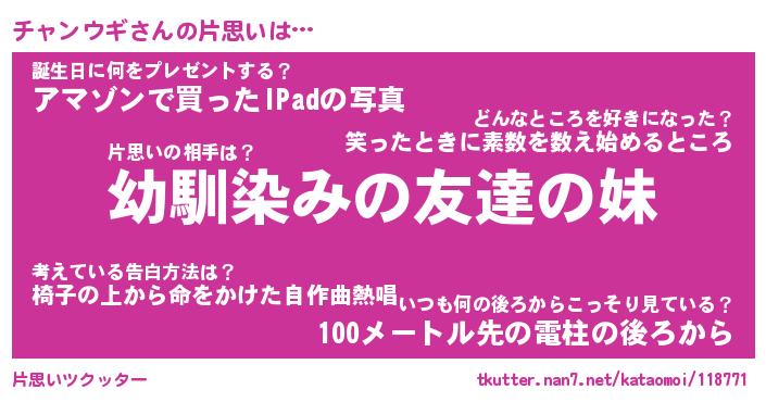 | 男性向けラノベタイトル風あだ名 | 『チャンウギの憂鬱』 |