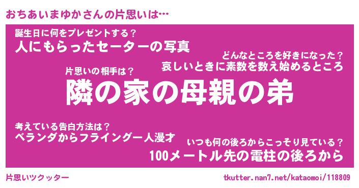 | 胡散臭い通販商品みたいなあだ名 | 『必ず成功するブレスレット…その名も「おちあいまゆか」』 |