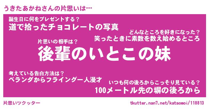 | 胡散臭い通販商品みたいなあだ名 | 『モテモテ間違いなし霊験あらたかなお札…その名も「うきたあかね」』 |