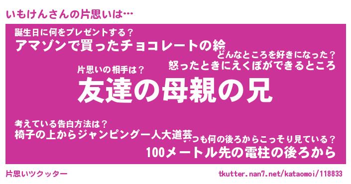 | ヘコむあだ名 | 『いもにー』『豆乳』『いもお』 |