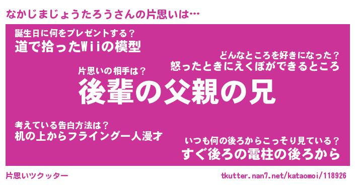| 胡散臭い通販商品みたいなあだ名 | 『モテモテ間違いなし水晶球…その名も「なかじまじょうたろう」』 |