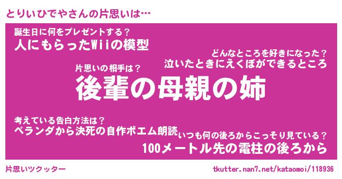 | 女子向けラノベタイトル風あだ名 | 『誰かこのとりいひでやを説明してください! ~契約から始まるウェディング~』 |