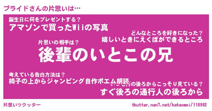 | 意味不明あだ名 | 『ペロリンブライド』『永久保存ブライド』 |