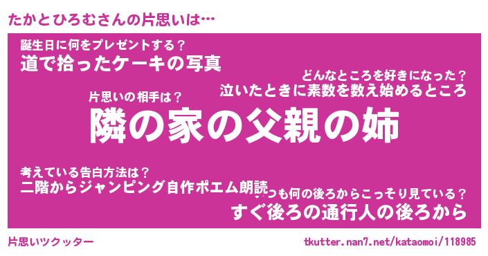 | 胡散臭い通販商品みたいなあだ名 | 『必ず成功するブレスレット…その名も「たかとひろむ」』 |
