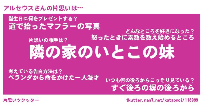 | 男性向けラノベタイトル風あだ名 | 『アルセウスの憂鬱』 |