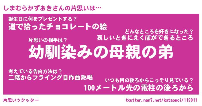 | 男性向けラノベタイトル風あだ名 | 『しまむらかずあきの憂鬱』 |