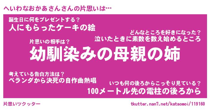 | 女子向けラノベタイトル風あだ名 | 『(仮)へいわなおかあさんのやんごとなき事情』 |