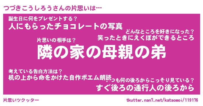 | 男性向けラノベタイトル風あだ名 | 『つづきこうしろうの憂鬱』 |