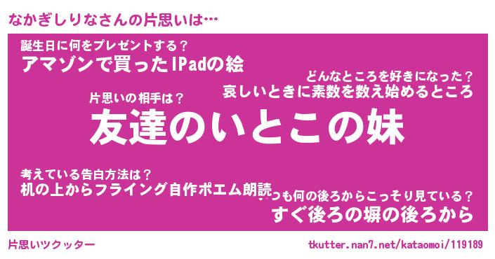 | 女子向けラノベタイトル風あだ名 | 『誰かこのなかぎしりなを説明してください! ~契約から始まるウェディング~』 |