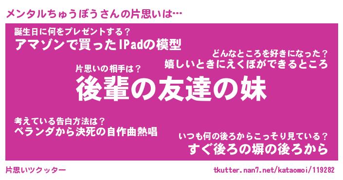 | ツイッター | メンタルちゅうぼうさんのツイッターID『namakemono_nyan』 |