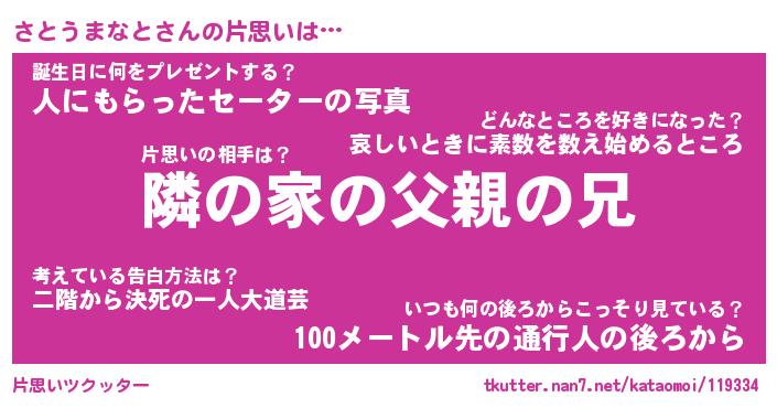 | 胡散臭い通販商品みたいなあだ名 | 『モテモテ間違いなし水晶球…その名も「さとうまなと」』 |