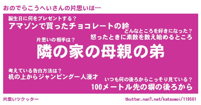 | 男性向けラノベタイトル風あだ名 | 『おのでらこうへいの憂鬱』 |