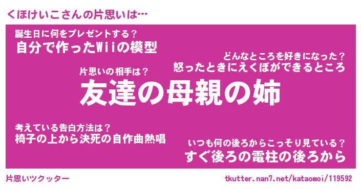 | 胡散臭い通販商品みたいなあだ名 | 『億万長者になれるブレスレット…その名も「くほけいこ」』 |