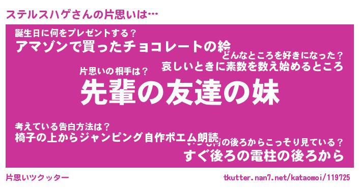 | ヒーロー風カッコイイあだ名 | 『スーパーステルスハゲ』『幻影騎士ステ』 |