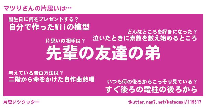 | ヘコむあだ名 | 『マツっふぃ~』『つくし』『マツお』 |