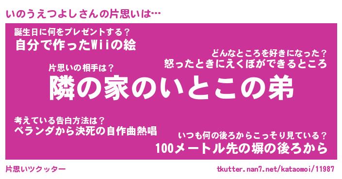 | ヘコむあだ名 | 『いのにゅー』『つくし』『いのを』 |