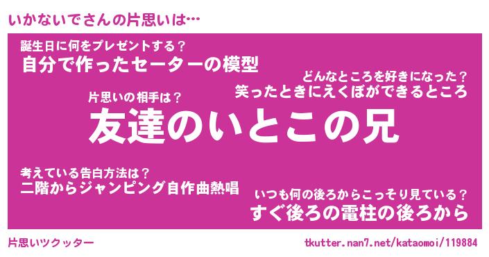 | 男性向けラノベタイトル風あだ名 | 『イカナイデアートオンライン』 |