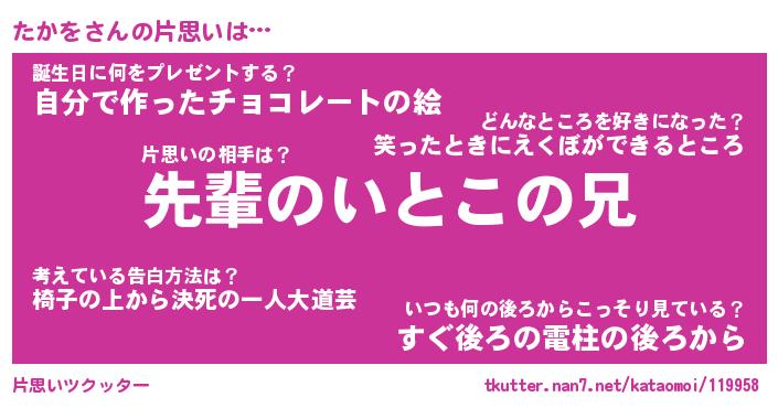 | ヘコむあだ名 | 『たかもー』『つくし』『たかお』 |