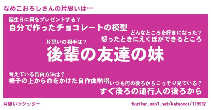 | ヘコむあだ名 | 『なめもー』『つくし』『なめを』 |