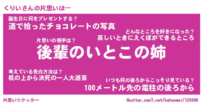 | 意味不明あだ名 | 『ペロリンくりい』『くりいフォーエバー』 |