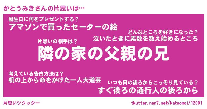 | 男性向けラノベタイトル風あだ名 | 『かとうみきの憂鬱』 |
