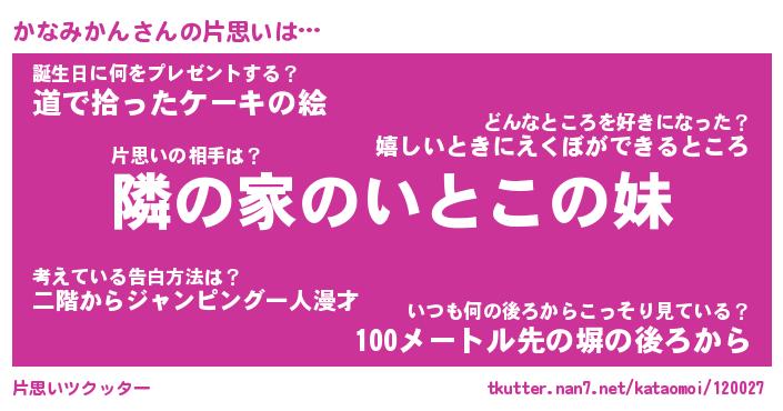 | 男性向けラノベタイトル風あだ名 | 『かなみかんの憂鬱』 |