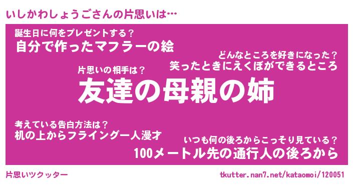 | ヘコむあだ名 | 『いしにー』『牛乳』『いしっちょ』 |