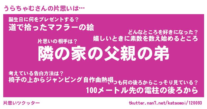 | ヘコむあだ名 | 『うらにゅー』『牛乳』『うらっ子』 |