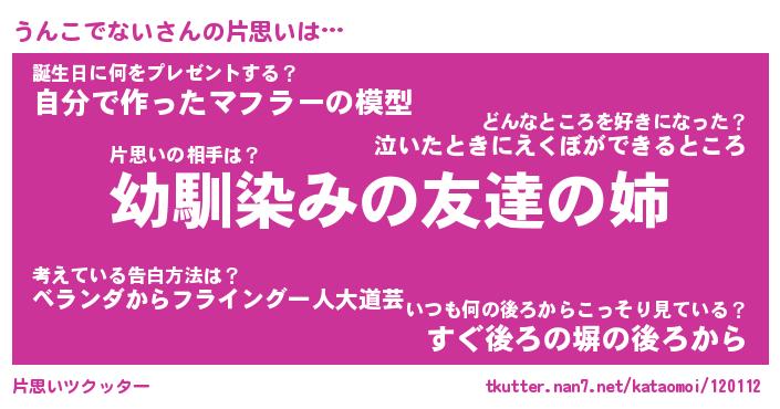 | ヘコむあだ名 | 『うんっふぃ~』『つくし』 |