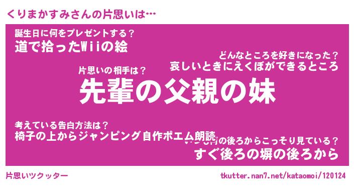 | ヘコむあだ名 | 『くりふぇ~』『豆乳』『くりっぺ』 |