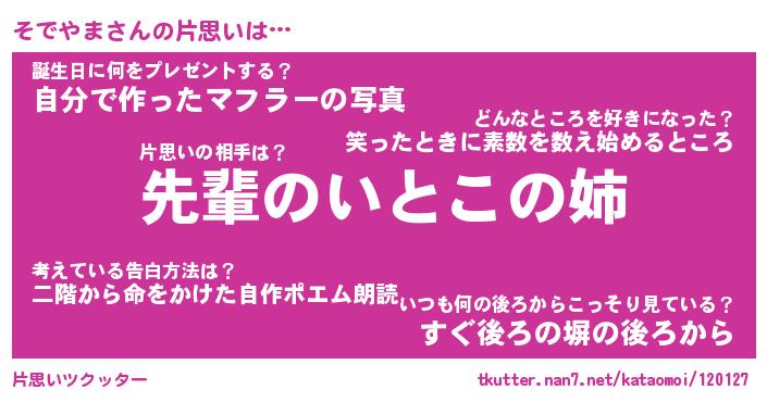 | ヘコむあだ名 | 『そでにゅー』『つくし』『そで太郎』 |