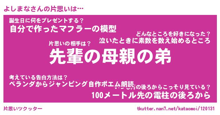 | ヘコむあだ名 | 『よしにー』『つくし』『よしお』 |