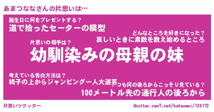 | 胡散臭い通販商品みたいなあだ名 | 『必ず成功するブレスレット…その名も「あまつなな」』 |