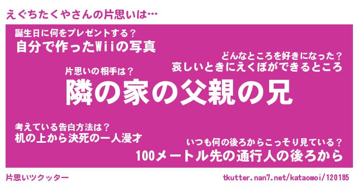 | ヘコむあだ名 | 『えぐにゅー』『つくし』『えぐを』 |