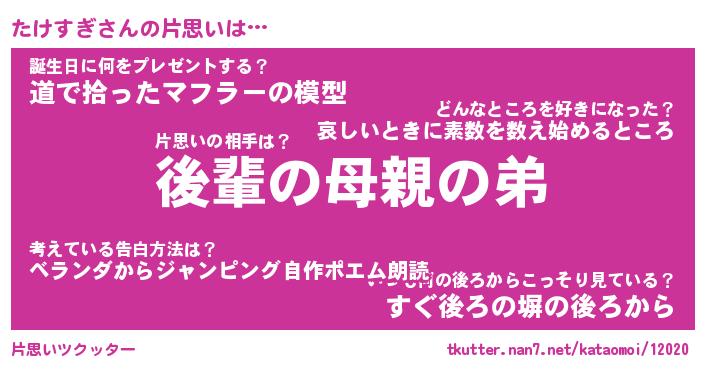 | ツイッター | たけすぎさんのツイッターID『namakemono_man』 |