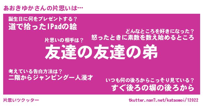 | 伝説のあだ名 | 『封印されしスナイパーあおきゆか』 |