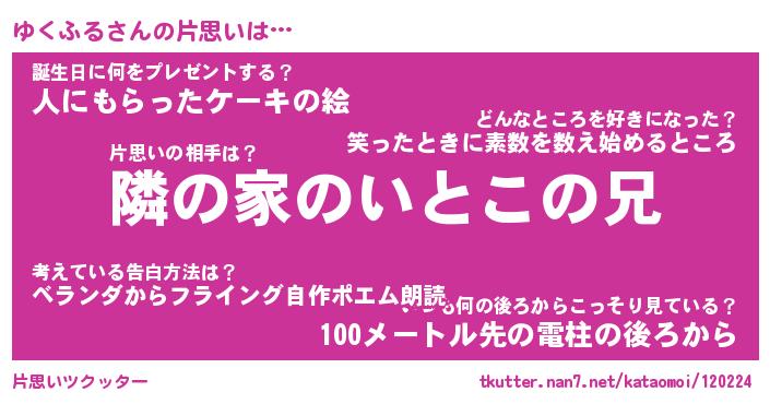 | ヘコむあだ名 | 『ゆくにゅー』『なまこ酢』『ゆくを』 |
