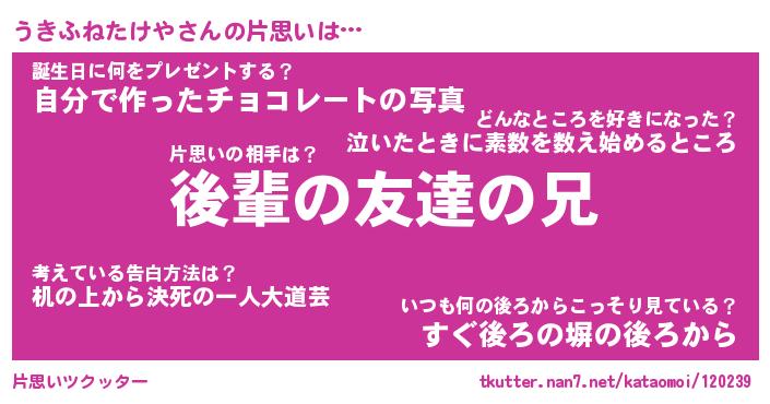 | ヘコむあだ名 | 『うきもー』『豆乳』『うきお』 |