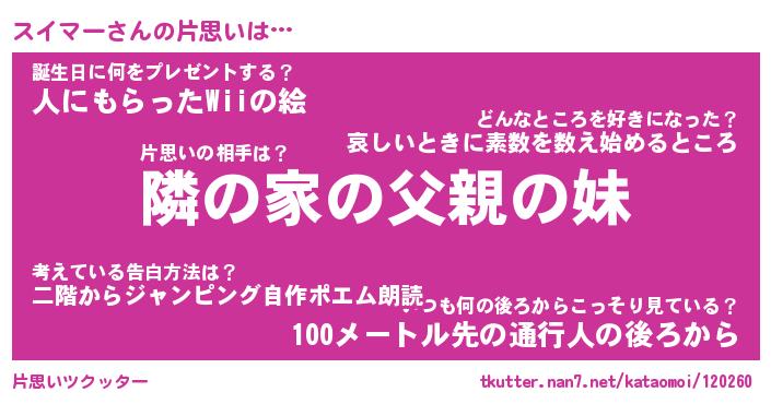 | 胡散臭い通販商品みたいなあだ名 | 『必ず成功する水晶球…その名も「スイマー」』 |