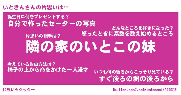 | ヘコむあだ名 | 『いとにゅー』『牛乳』『いとを』 |