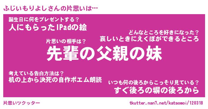 | 胡散臭い通販商品みたいなあだ名 | 『モテモテ間違いなし水晶球…その名も「ふじいもりよし」』 |
