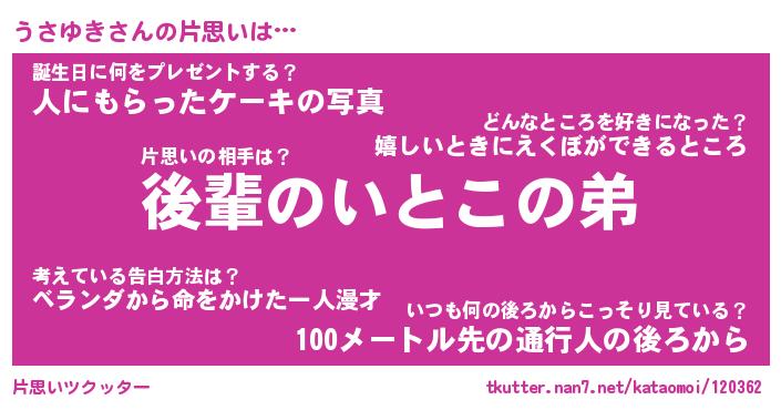 | ポケモン風あだ名 | 『ウサチュウ』『ウサユダネ』 |