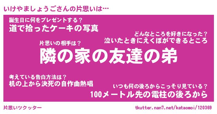 | 意味不明あだ名 | 『ペロリンいけやましょうご』 |
