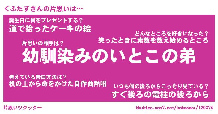| ヘコむあだ名 | 『くふにゅー』『豆乳』『くふお』 |