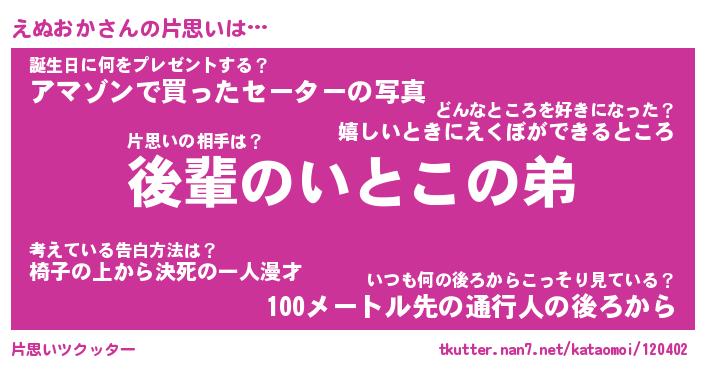 | ツイッター | えぬおかさんのツイッターID『dendenmushi_kun』 |