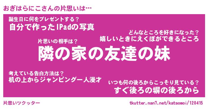 | 胡散臭い通販商品みたいなあだ名 | 『必ず成功する霊験あらたかなお札…その名も「おぎはらにこ」』 |