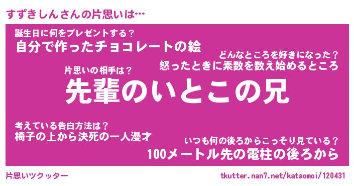 | 胡散臭い通販商品みたいなあだ名 | 『モテモテ間違いなし水晶球…その名も「すずきしん」』 |
