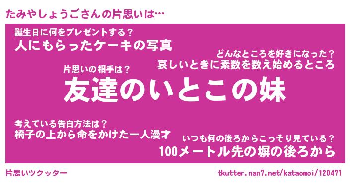| 胡散臭い通販商品みたいなあだ名 | 『億万長者になれる水晶球…その名も「たみやしょうご」』 |